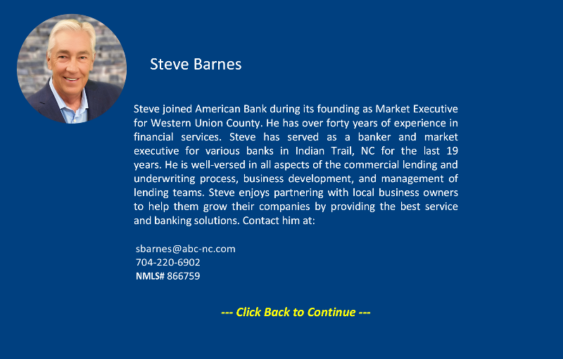 Steve BarnesIndian Trail - Monroe - Matthewssbarnes@abc-nc.com704-220-6902NMLS #866759 |