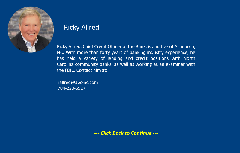 Ricky AllredChief Credit Officerrallred@abc-nc.com |